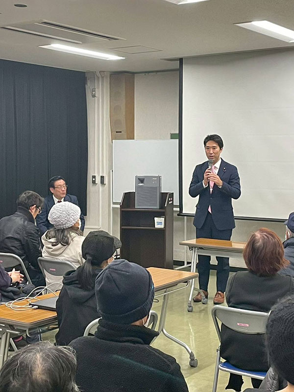 私の区政報告の後、今年7月に参議院議員選挙東京選挙区で初当選をした初々しい川村ゆうだい参議院議員にも国政報告をして頂きました。